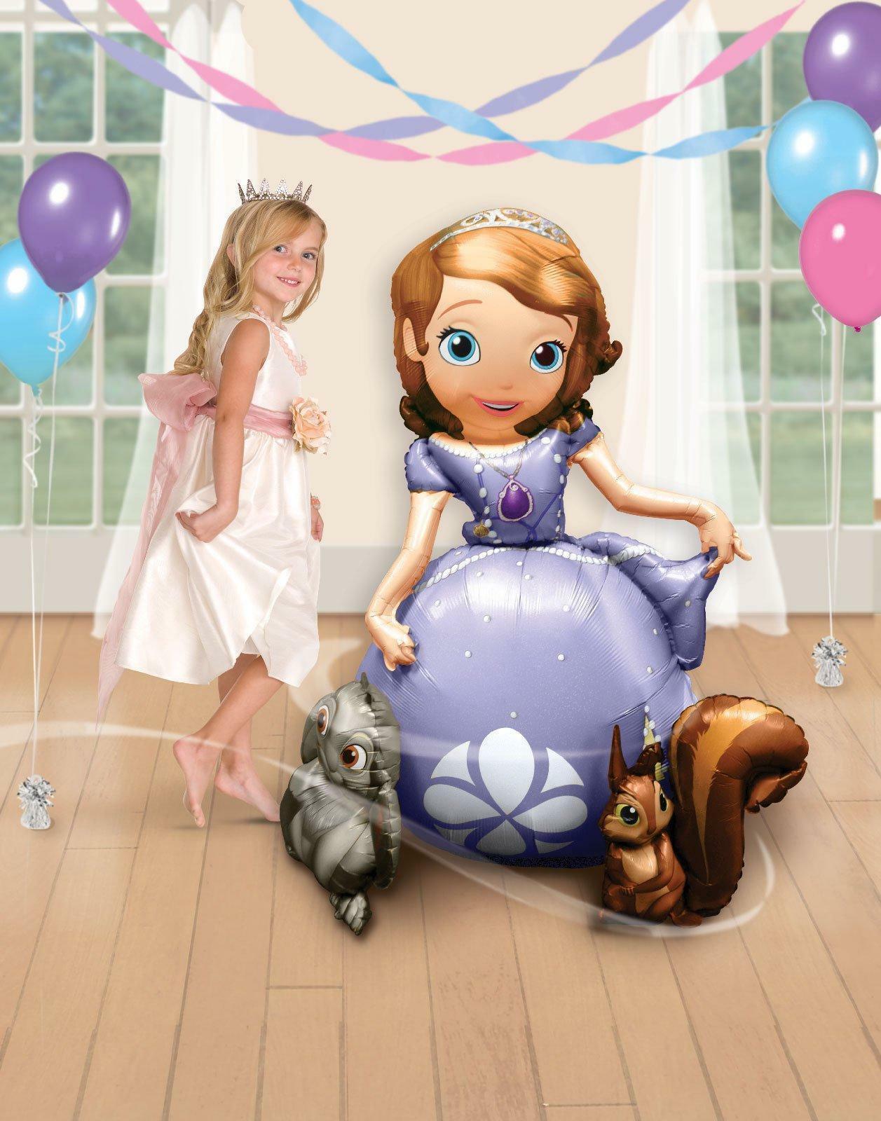 Balão gigante com o desenho da silhueta da Princesa Sofia acompanhada pelos seus queridos animais, não faltam detalhes.