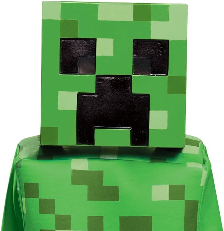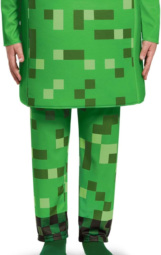 - Esta fantasia de luxo Minecraft Creeper inclui uma túnica de espuma feita de tecido 100% poliéster e 100% espuma de poliuretano, apresentando o icônico padrão de pixel verde. A túnica é projetada para recriar o visual de blocos dos Creepers, perfeita para dar vida ao vilão de videogame favorito do seu filho!