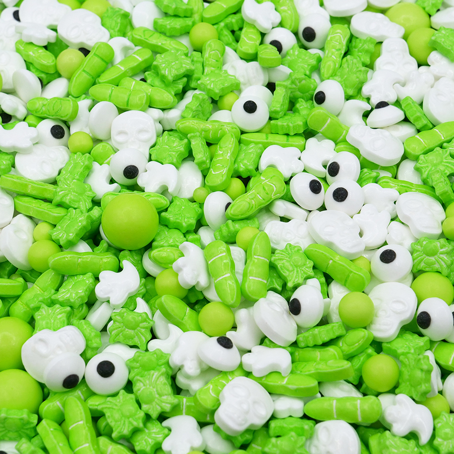 - Sprinkles de Halloween — A magia (e travessura!) que faltava nas tuas criações Um toque assustadoramente doce aos teus bolos, cupcakes, donuts e pop cakes com o nosso mix de Halloween. Transforme qualquer doce numa verdadeira obra de arte aterrorizante (e irresistível!). Surpreender os pequenos monstrinhos lá de casa, cada dentada será um feitiço de sabor e diversão!