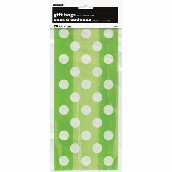 - Pacote com 20 sacos de presente de celofane de bolinhas verde limão.