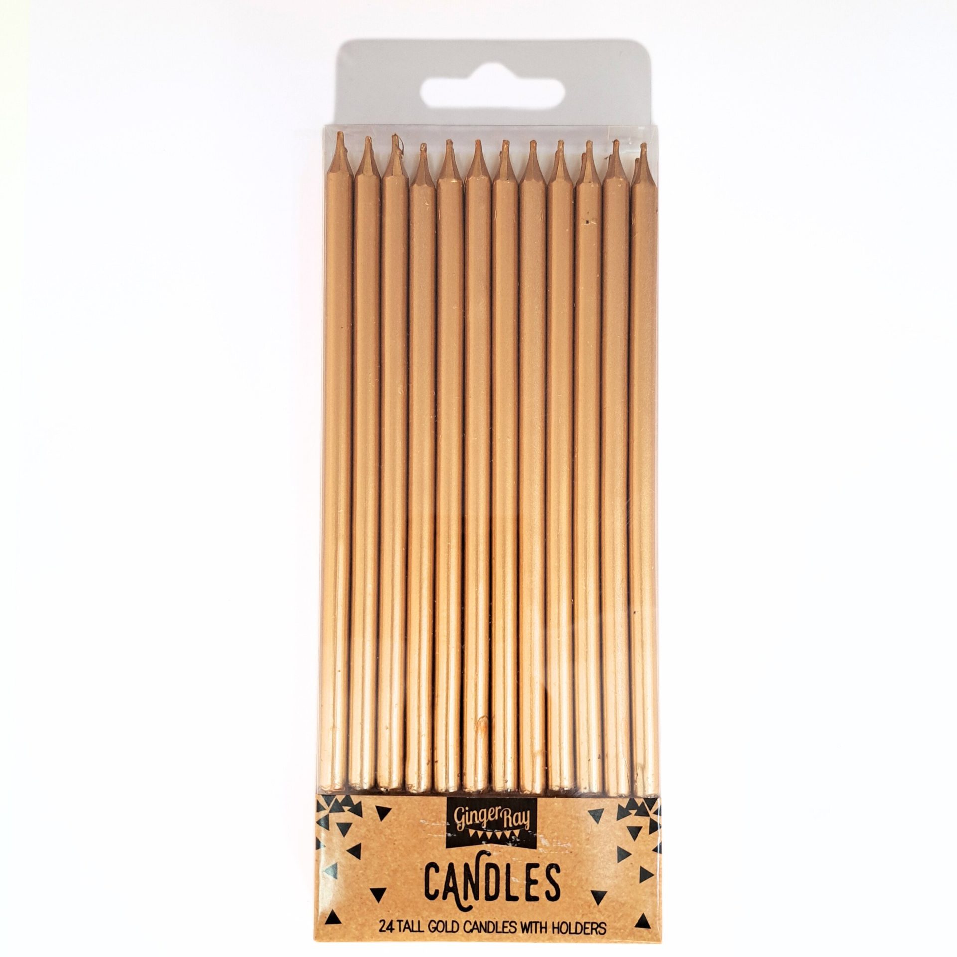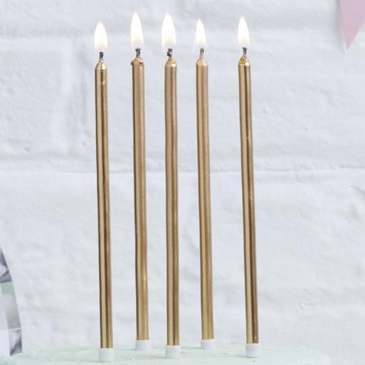 Adicione um toque de brilho ao seu bolo de aniversário com estas lindas velas altas douradas.